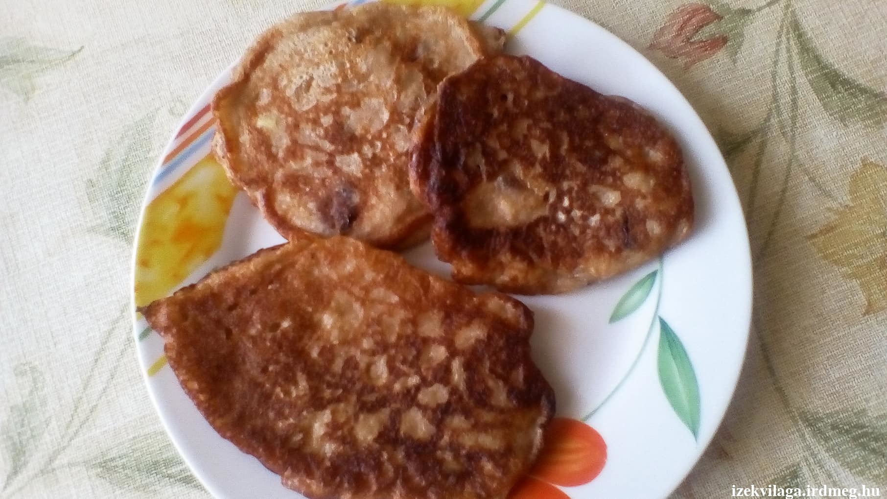 Elkészítés: A hozzávalókat elkeverjük. Serpenyőben olajon sütjük, kanállal kis halmokat rakjuk és eligazítjuk. Óvatosan átfordítjuk és a másik oldalát is megsütjük.