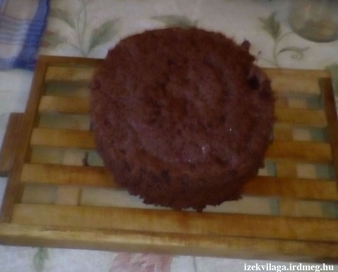 1 tortabevonót felmelegítettem 4 evőkanál olajjal elkevertem. A csokis krémmel töltött, mikróban sült tortát bevontam a csokimázzal.