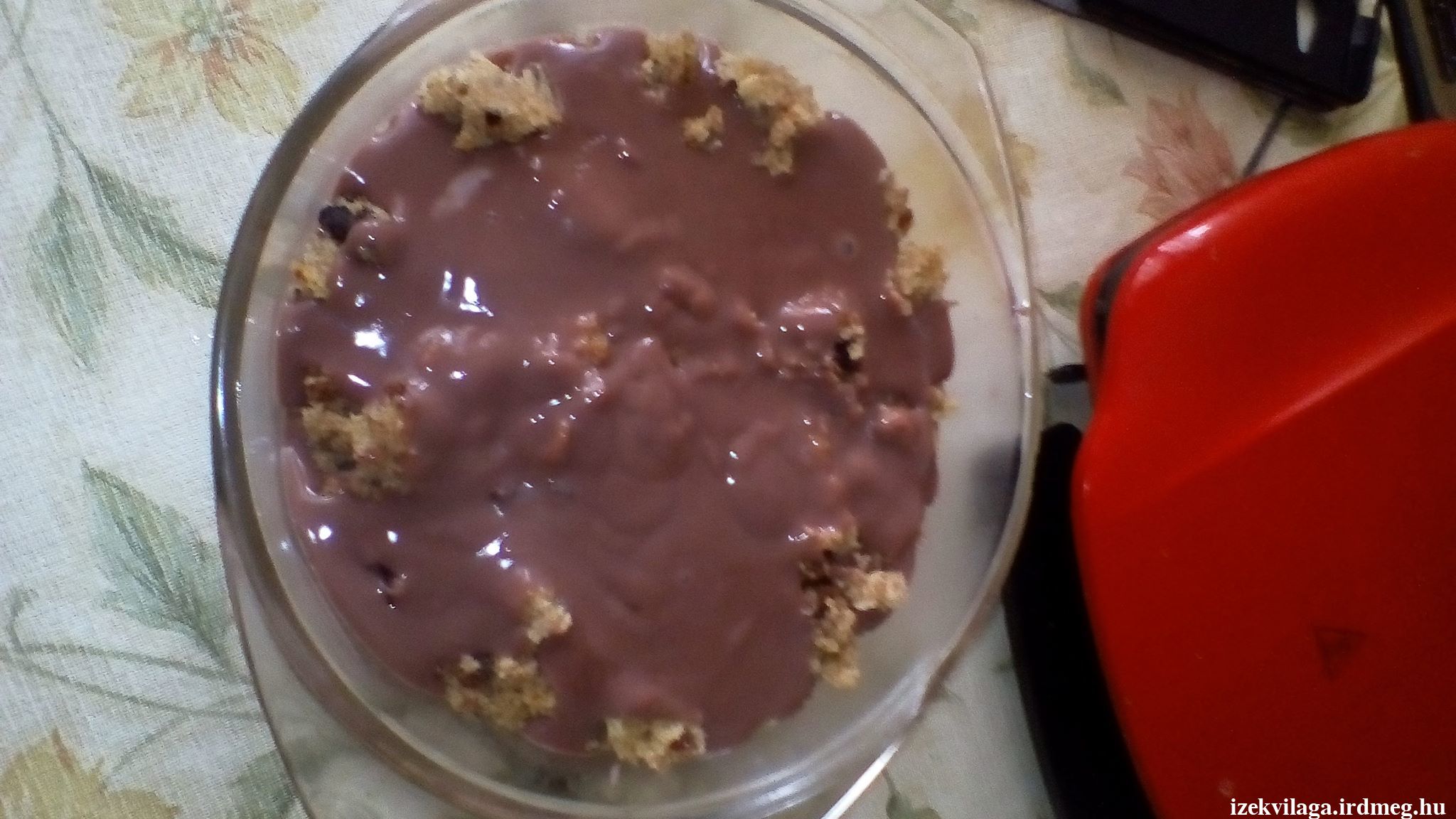 Csak összekeverem egy kis tálban, és berakom a mikróba 3 percre max fokozatra. Miután kihűlt darabokra vágtam, csokipudinggal rétegeztem.