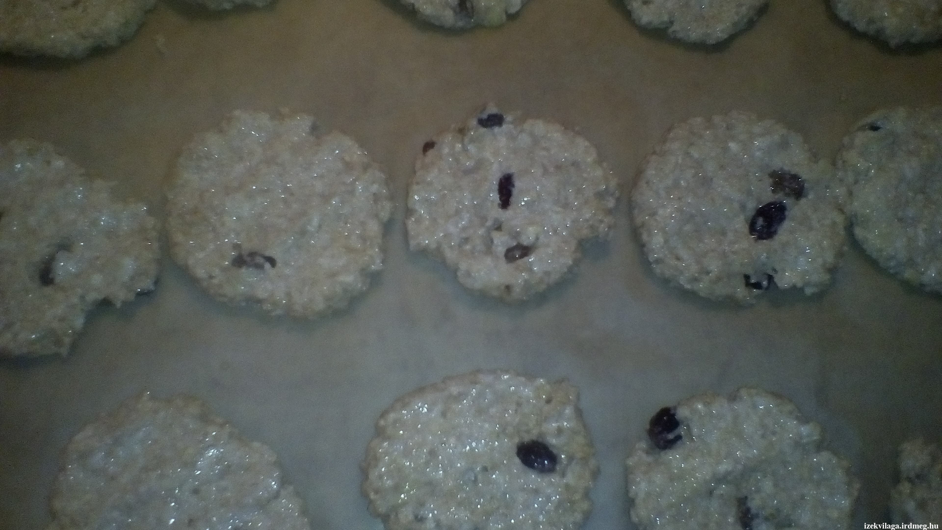 A száraz anyagokat egy tálban elkeverjük, majd hozzáadjuk az olajat és a vizet. A masszából nedves kézzel golyókat formázunk, sütőpapíros tepsire rakjuk, kezünkkel vagy kanállal kilapítjuk.